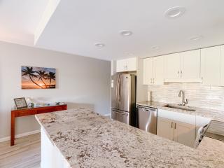 Our condo has been beautifully renovated and offers a ground floor 1 bedroom, 2 full bath unit with a lanai that backs onto a partially private garden area away from any of the hustle and bustle of the main road.