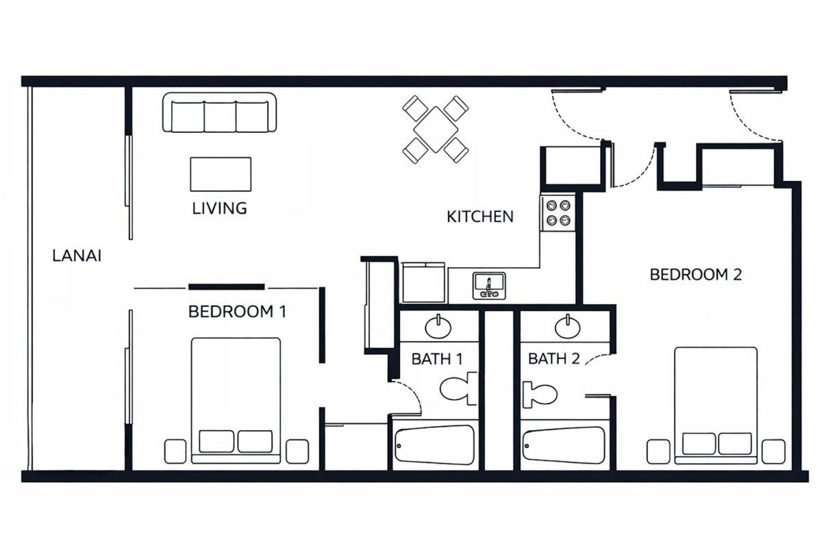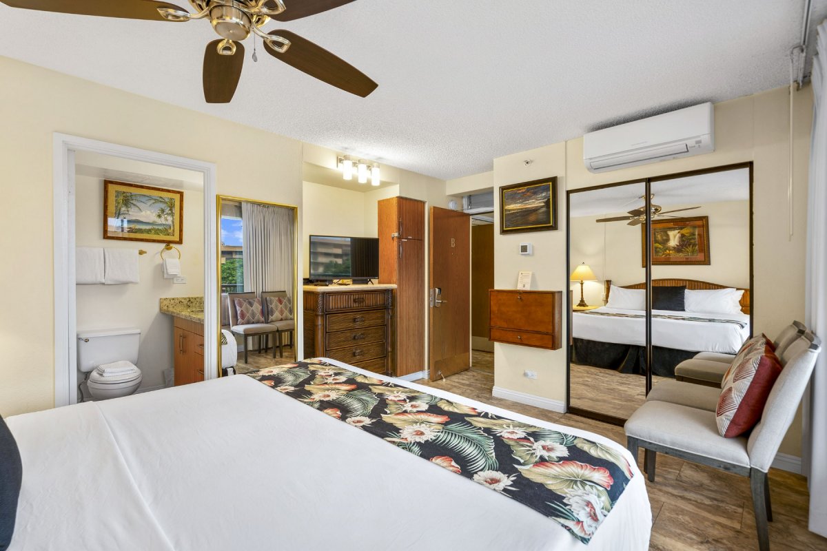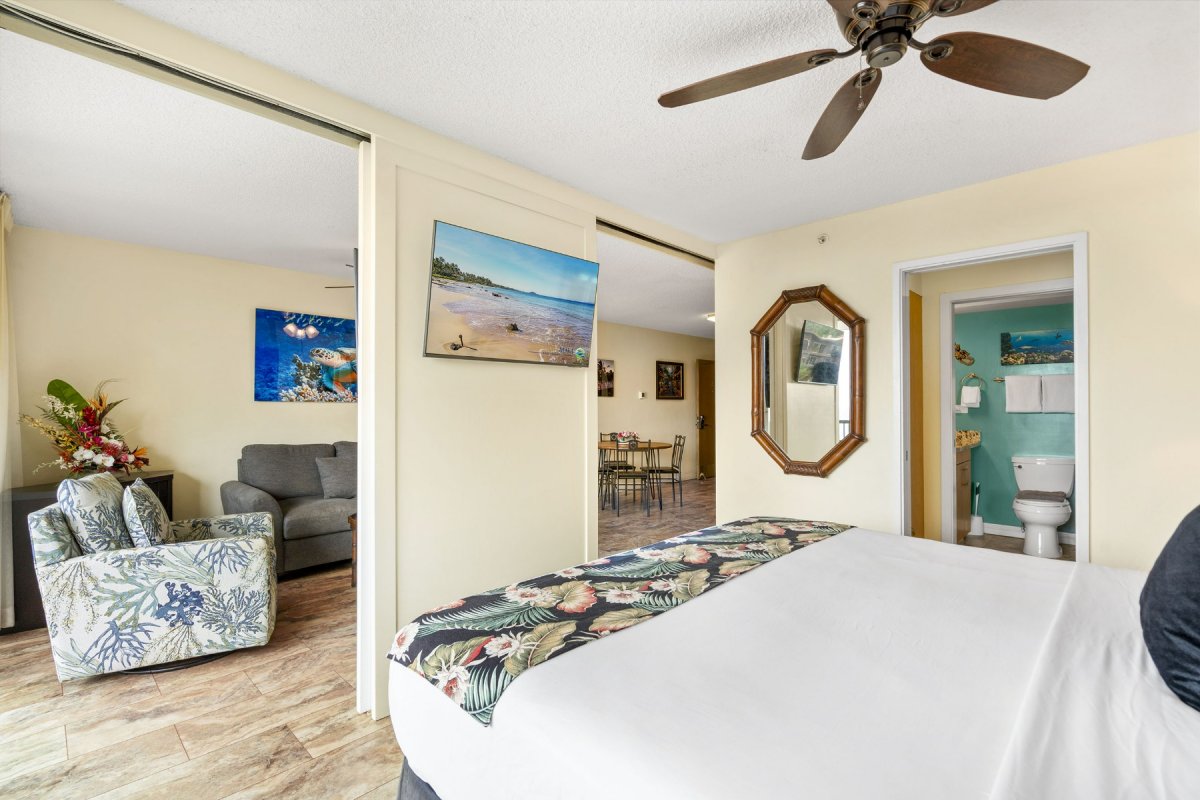 The property is also unique in that your condo features a "lock-off," a separate exterior door entrance for the second bedroom. That bedroom also features a mini-fridge, writing desk, and 32" flat screen, as well as a full en-suite layout with shower and tub.